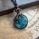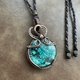 使用天然石,配以纯铜线,以绕线方式手作而成, 然后再加上复古做旧效果, 再抛光处理令花纹更具深度和对比.