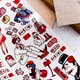 需自行裁切外型,輕柔地移除透明膜,此時轉印貼紙會連同透明膜一起被剝離起來,將其覆蓋在目標物上,用手(或是信用卡)將其推平後,慢慢地撕開透明膜即可。