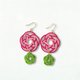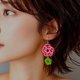 这款手工耳环采用日本传统工艺“水引”制作,上方为由深浅粉色组成的大型梅结,下方则搭配鲜绿色小梅结。两颗结随动作自然摆动,展现女性优雅与可爱气质。