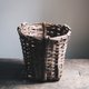 |台湾民生工艺 采摘篮 早期的采摘篮有各种形式 此采摘篮是使用台湾竹的早期编织 为了使篮子站得更稳 底部是方形而顶部为圆口的设计 在外皮上进行了火烤折弯的动作 让四边一体成型的加强结构 表面上呈现微微焦黑的色泽 结构上也更加扎实 | 产地:台湾 材质:竹编 高度:30 cm 开口直径:33 cm 提把麻绳长:50 *有附粗麻绳 *早期物件会有使用过后旧痕迹以及破损状态,可以接受者再购买