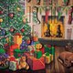 **吊着圣诞袜的暖呼呼壁炉前,平安夜里睡着的小猫咪及狗狗等着圣诞老公公来临,圣诞树下推放了许多礼物及玩具,您想挑哪一个圣诞礼物呢?**