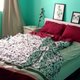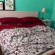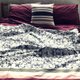 「The Day that Spring light Shine 那日春光闪耀”这个与酒红色拼布系列,是铁灰色的花朵树叶图腾的复制,精致的细节展现文艺复兴风格,充满了热情,就像是描写一场婚礼。此系列除了被套之外,也出枕头套;特别的是,花朵树叶图腾上方是两条咖啡棕的粗条纹,但是下方是咖啡棕与粉色条纹的跳色,在床上摊开,有如一幅图画,而下方则为酒红色绑带。
