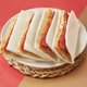 4.) 依照个人口味喜好,将蜜汁火腿、烤方包入四方饼内,即可食用。