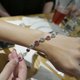 这串手链微带蓝绿的海蓝宝和紫红的红宝石原石,虽然是使用原石,但是选用了小巧偏向片状,所以整体颜色亮丽而又秀气小巧,不需担心太过华丽。