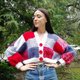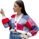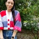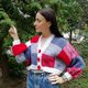 Women's short knitted cardigan in patchwork style is the trend of the season. The originally selected colors create a mosaic effect. 100% handmade and unique.