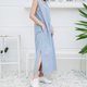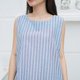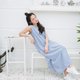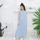 - Sleeveless Maxi stripes cotton Dress in Blue And White - 2 Side Pockets