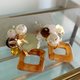 搭配着仿玳瑁纹的方形饰片,虽小巧却极具份量感,是一对能瞬间吸引目光的独特饰品。