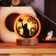 夜晚时,关上室内的大灯,玫瑰盐灯的光线映衬出木头雷雕的轮廓。白天时,带有厚度的压克力板随自然光产生阴影,更烘托出画面的立体感。