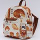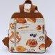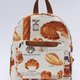中号双肩包,比小号的稍微大一点 日本进口法式面包图案布料,棉麻材质,素色配布为斜纹布料 前片有一个拉链口袋和磁扣插袋 两侧是松紧插袋 主口袋是隐藏拉链 后片有一个拉链口袋,可以收纳手机 内侧有一个二合一的拉链插袋