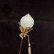【名称】淡绿翡翠圆珠设计款发簪 14K包金