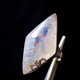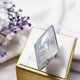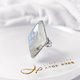 设计师严选高品**蓝月光石**,磨制**菱形**戒面,**彩虹蓝光**闪现,晶体透、水光美,极少黑点与矿缺,光泽表现优越上乘。