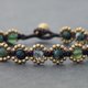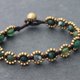 这是一款手工编织的手镯,由深棕色棉质蜡线与花式碧玉石编织而成。