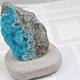 拥有非常独特名字的水蓝矿物异极矿,晶体因为非常细小,晶体的两端呈不对称的板状或柱状,受热后两端各具不同电荷,因此名为异极矿,异极矿英文学名HEMIMORPHITE源自希腊文,( HEMI )是半的意思,( MORPHE )是外型的意思。蓝色的异极矿具有强大的能量,并非强力发送,而是安静,稳定,平和放送,且具有深沉的安定作用,可以让心情平稳是十分特殊的水蓝色矿物