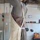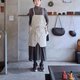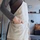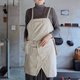 米白皱缩棉麻,质地朴实温润 中性大方,可作围裙或穿搭。 适合居家/工作穿着,下摆两片开衩设计, 便于起身蹲下的活动机能。