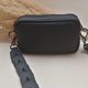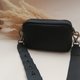 Black small but roomy bag made of genuine leather and cotton lining. The bag`s hardware colour is black nickel.
