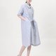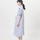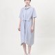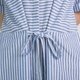 - 宽松版型、棉质混纺、腰间造型绑带、条纹拼接设计、下摆弧形设计。