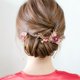 要带古典美,深红色比我常用的鲜红色更合衬,而中间的一朵小小的peach color就是亮点,平衡了整个头饰彩度,看起来不会太暗沉。