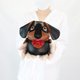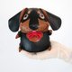 手工娃娃肥腊肠犬,尺寸约10x15x8厘米,内里材质为聚酯纤维娃娃的四肢可以移动。采用手绘技术,在合成皮革上呈现高品质的色彩。精心定制