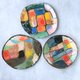这是用手工将拉伸的黏土粗略地切割出来并抬高边缘而制成的具有手工制作感觉的圆形盘子。