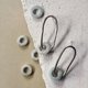 制作这款最初的想法是以摩登的方式诠释玉石这个经典矿石。白净的缅甸玉,配上纯银的光泽,是那么的耐看、那么优雅。抛开传统玉石的繁复雕刻,带给大家属于现代女性的玉石饰品。本款的纯银回圈经过些许锻敲,所以每一对成品都会有独一无二的不规则痕迹。