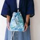 - 去日本的时候,看见穿和服的女生 都会提着束口的包包来收纳随身小物 以此为灵感,我们制作了这款优雅的和服包 调整过的背带长度,让包包可肩背与侧背两用 多层次的造型设计,让装东西的包包造型更好看 选用有质感的蜡绳,以手染布与各种质地的内里布