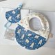 - 弥月礼盒三件组: 手工宝宝渔夫帽*1件 围兜*1件 奶嘴链防尘套*1件