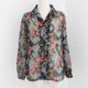 - 复古日本制70s气质典雅花朵图腾黑色雪纺长袖古着衬衫