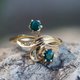 Round cut, 0.45x2 =0.9 ct, transparent, dark bluish green color.