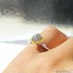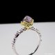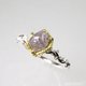 将钻石原石镶嵌于K金与银的组合戒指上。