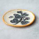 盘面采用略带粗糙的白陶土,施以白色化妆泥后,再手绘上让人联想到秋季红叶的图案。