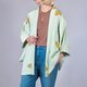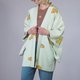 状况良好的高端轻质柔软真丝外罩,带有吉祥图案 Kikkou、龟壳。 薄荷蓝和橙色给你带来清新的氛围。