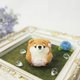 带有眉毛、穿着绣球花裤的柴犬宝宝 约 3 x 3.3 x 3 厘米