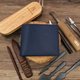 我们所有产品可看见的边缘都会经过处理。先经过基本的修正打磨,再反复地上色及抛光,直到光滑平整后打上一层蜡作保护。单是这个过程几乎占上整个制作时间的三份之一。颜色方面,我们一般都是选择与主体(封面)皮革颜色最贴近的作为默认。