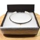 这是一款带有部分深邃锤击纹饰的圆弧形纯银手镯。