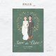 ✦ 喜帖为双面设计,正面画主视觉插图(新人的半身/全身插画像),背面放其他插图及婚礼信息,其他插图可为宠物、人物头像、信物...等小插画(3个内不须加收费用)