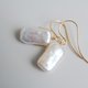 简约长方形珍珠耳环。 因珍珠横向打洞,故将配戴方式调整为纵向。 为固定珍珠,局部使用树脂加强固定,使其不易滑动。 无论是日常配戴或特殊场合,简约的单颗设计皆易于搭配。 金属部分为14KGF。 可更改为夹式耳环。