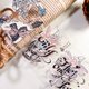 連續循環圖像需要裁切成為膠帶,無法避免不切割到圖面,在製程上多少會有印刷剝落的情形會發生,屬於不可避免的物理性質,在使用上請再多留心。