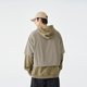 轻户外340G拼接连帽卫衣采用创新 “假两件式” 分层设计,使用不同材质与同色系拼接效果,赋予服饰层次分明的视觉冲击;单品采用多种混纺面料,提供了柔软舒适的穿着感受和适度的弹性,同时具有较好的抗皱性。梭织拼接下摆使用松紧抽绳设计,可调节版型。胸前立体口袋搭配金属拉链,单品正面袋鼠式口袋。连帽处的抽绳设计,可自由调节松紧,满足不同的穿搭需求和防风保暖需求。