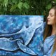 - 原创油画在拉伸的画布上,为室内的 "鲸鱼 "50 x 70厘米