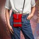 本商品以各族图腾及颜色结合酒袋布,透过创意巧思制作具文化意涵的手机袋,厚棉衬可缓冲撞击且增加高尚质感,加做背面夹层用途多,并且依照不同身形调整背带长度,外出及出国均适宜。