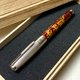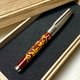 天然漆彩绘钢笔,金属铜胎天然漆赤溜为底再请画师写优美诗词,一笔一画上漆彩绘,有笔触有厚度,人物动物的神韵型态线条,以写意手法呈现,有别于一般的工笔画。 一般的漆笔平面工整看不到笔触,老山羊生漆彩绘看得出一笔一画的笔触,以生动的线条勾勒主题。 除可做静态的桌上摆件陈设,更是可供书写的文具。是相当有完整性的艺术作品,精益求精,非日制非陆制非化学涂料非印刷 。老山羊打开天然漆工艺的新境界,以创新手法打造天然漆钢笔的新领域。 以精湛的工艺再创钢笔可用可藏的新美学,钢笔不只是在让人享受手写的温度及纸面上的滑顺感,天然漆生漆彩绘钢笔更是可当桌上摆饰的艺术品。