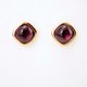 - 6mm 枕形卜面红石榴石纯银电18K 玫瑰金耳环