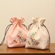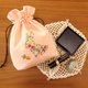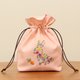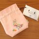 这款带有角撑板的抽绳小袋采用兔子形状,饰有许多花朵和叶子。
