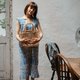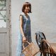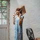 方领长款连衣裙,宽肩带。 沿下摆采用宽褶皱设计,后部拉链隐藏在接缝处。 材料是棉 100% 模型是 163 厘米。