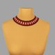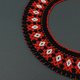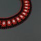 此颈链采用捷克进口小珠及坚韧的尼龙线手工制作,选用红、黑、白三色珠饰交织而成。