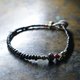 这款手链串连了古老玛瑙、血红色的白色心愿珠、old 钦银与 old 奥里萨黄铜,以及漆黑的珠饰。
