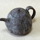 这件作品是使用信乐黏土在陶轮上制作的倾倒器皿。然后用海绵将混合有油漆和顶层釉料的粘土涂抹在整个作品上,在最后一次烧制后,将其小心地雕刻掉,以便只留下少量的顶层釉料。内部涂有釉质,并精心钻有小孔,以形成茶滤。盖子配有盖塞,因此可以整齐地固定到位。大手柄使倾倒变得容易,水也容易排出。底部也经过精心加工,并有手绘铭文。