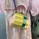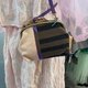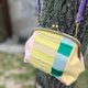 采用兵库县西脇市产的播州织布料制成的口金小包。 是适合肩背的可爱尺寸。 内侧还有一个小口袋。 此为停产的稀有布料制成。