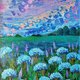 这件艺术作品是一幅独一无二的明亮多彩的画作。我的画是用调色刀和画笔在画布上用压克力绘制的。