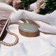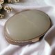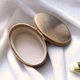 这只小巧的盒子正式名称是Pill box药盒,顾名思义是早期绅士淑女用来携带药物或化妆品、饰品的随身收纳盒。银色金属泛着一丝黄光,旧得很有味道,盒身装饰纹理及绳纹包边让盒子尺寸玲珑却不失细节,连盒底都有精致刻纹,最重要是镶在盖上的绿缟玛瑙green onyx温润厚实,隐约透着天然矿石的云彩裂纹。